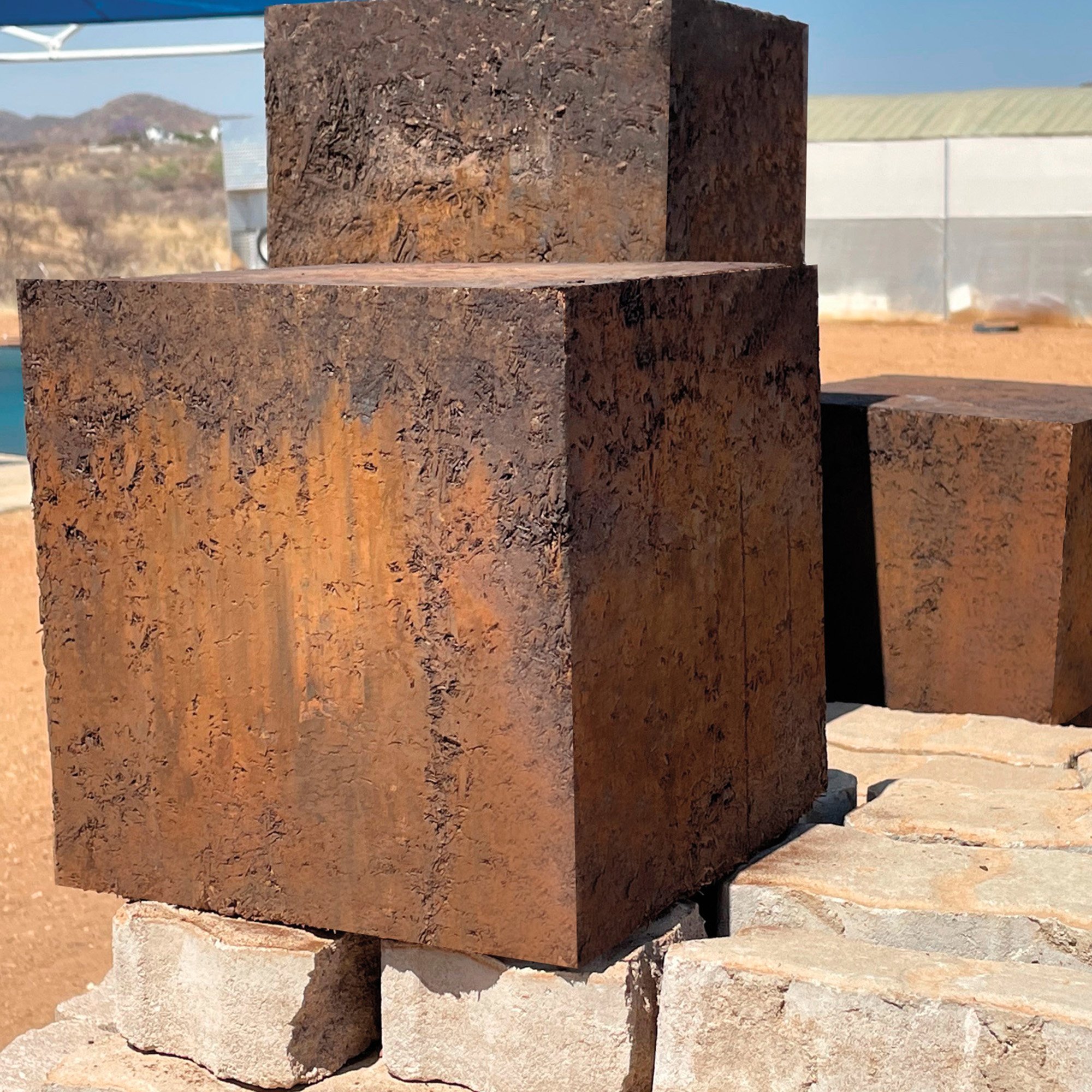 His studio first began testing the concept in Namibia with a project called MycoHab, a proposal based on one-story buildings constructed out of mycelium-based blocks for people living in informal settlements. Redhouse achieved this by growing edible mushrooms on the waste of the country’s invasive encroacher bush, then pressing the remaining mycelium into strong, carbon-storing blocks. “If we can take that material and convert it into both food and housing at the same time, not only are we using it to feed people, but we can be storing carbon dioxide to keep it from releasing into the environment,” Mauer says.