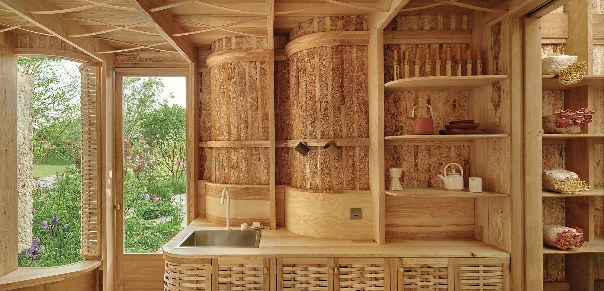 A lot has happened in the industry since 2018. David Benjamin, Autodesk’s lead on net-zero buildings, is researching how to create affordable housing in Oakland with mycelium. Designers have been experimenting with incorporating it into upholstery materials, lighting, acoustic panels, exterior cladding, and even structural blocks. This year alone, mycelium has been featured at various global design fairs in installations like Henning Larsen’s Growing Matter(s) at Milan Design Week 2025, Expo 2025 Osaka’s German Pavilion, and Studio Weave’s Intelligent Garden and Building at the Chelsea Flower Show.
