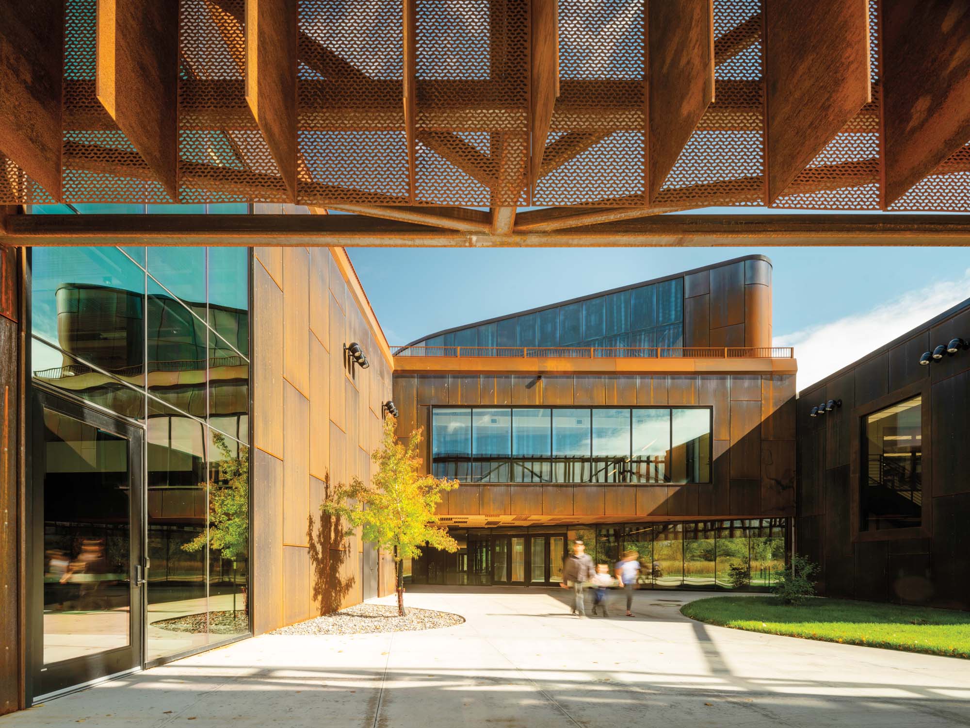 In Wyoming, CLB Architects transforms a former big box into a high-tech hub with a distinctive weathered-steel scrim.