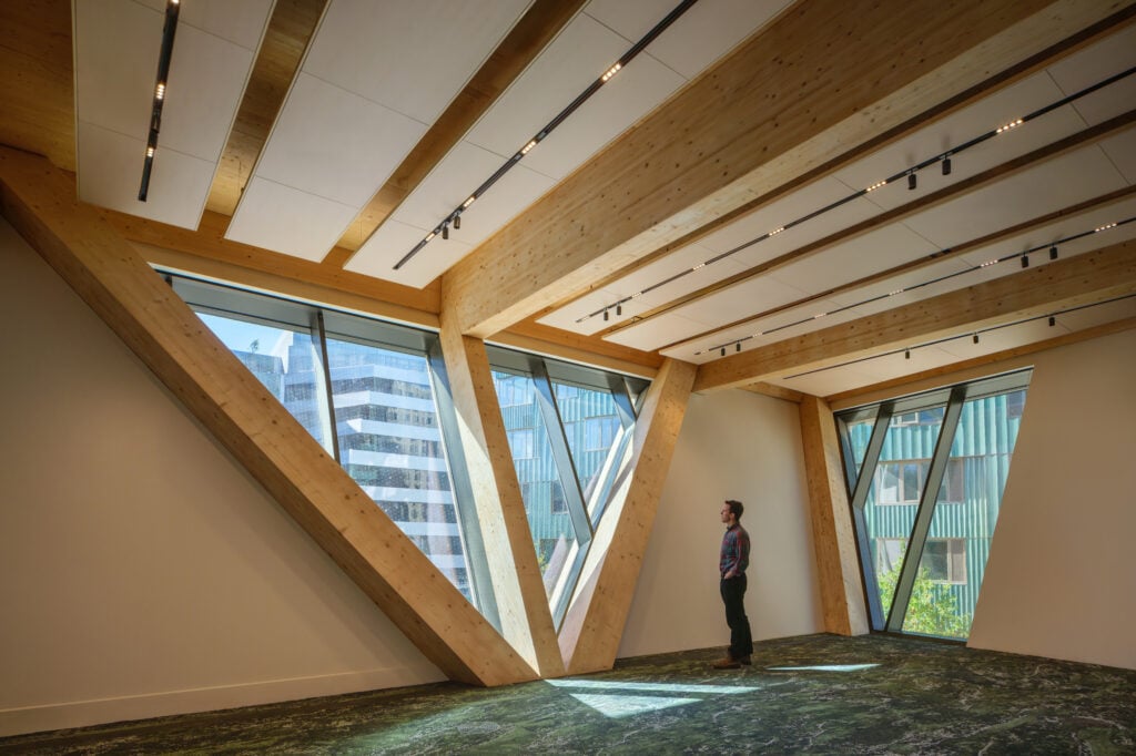 We were able to use mass timber throughout, but we also thought about how to innovate with it. A lot of people think that mass timber only lends itself to boxier forms, but we wanted to create a new shape that could expand beyond those.