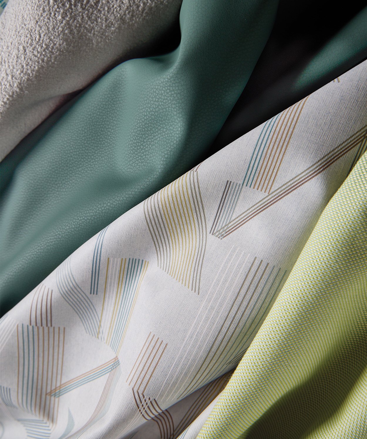 Featuring eight patterns and 66 colorways, Haiku is a textile collection aimed at health-care designers. Intended to complement healing environments, the collection offers soft pastels to deeply saturated jewel tones. Three patterns are produced using a minimum of 50 percent resin derived from forest industry waste, while the Kigo pattern is produced using yarn containing marine plastics. All patterns have been constructed to meet rigorous health-care requirements.