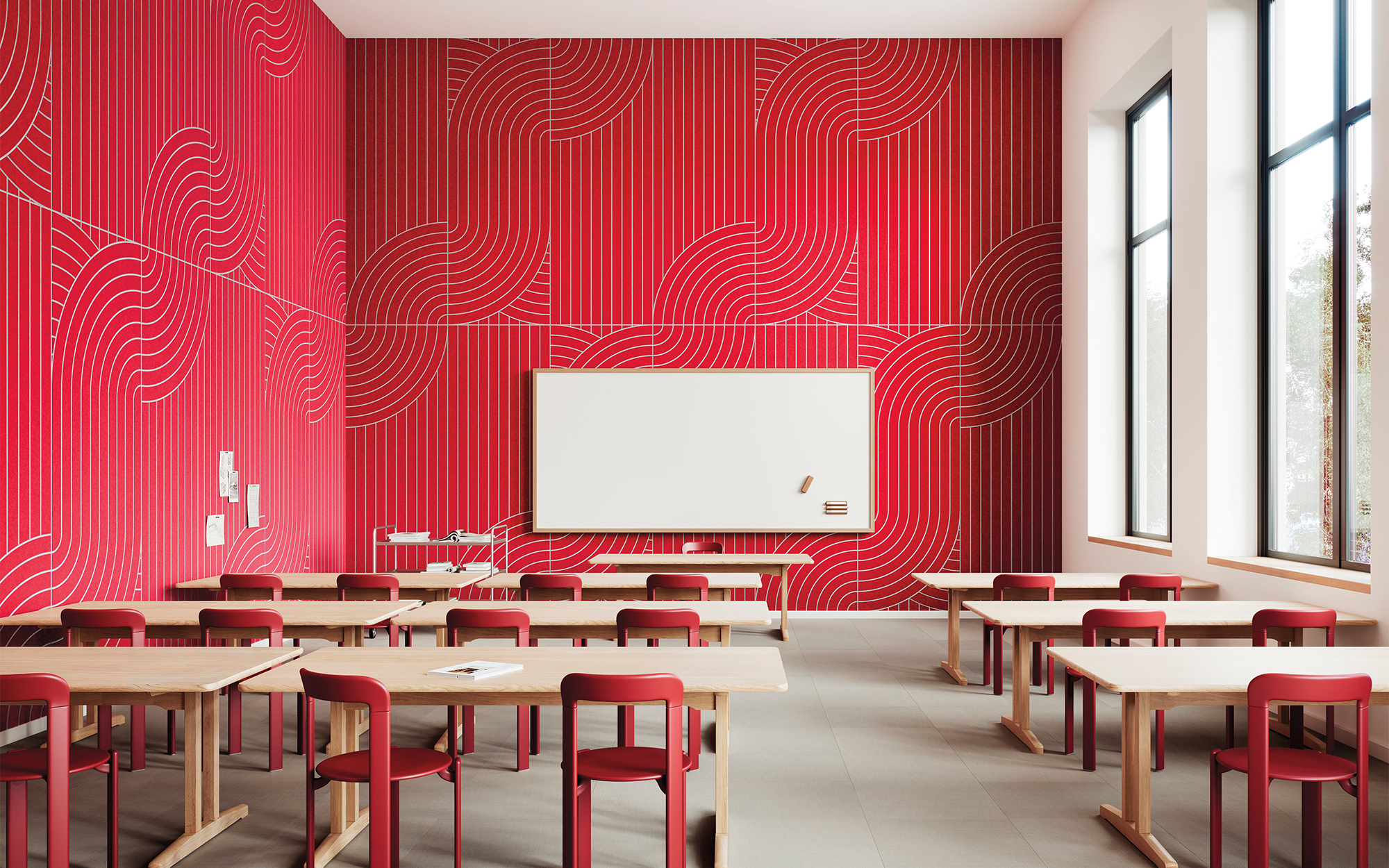 Inspired by Japanese Zen gardens, X-FELT is a collection of acoustic panels and tiles featuring precision-cut patterns that infuse spaces with a sense of calm. The collection meets rigorous fire safety standards while eliminating the need for harmful fire-retardant treatments. X-FELT is made from GRS-certified PET that is fully recyclable through the BAUX Circle Program.