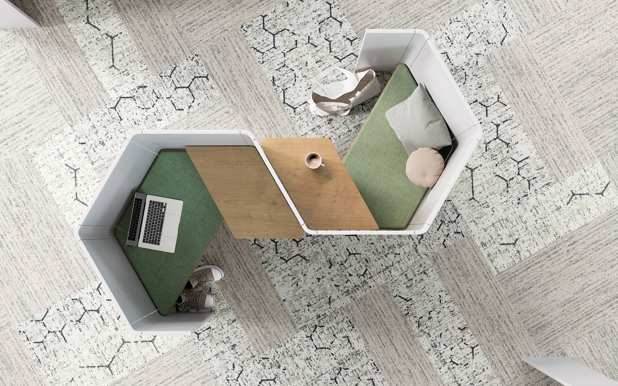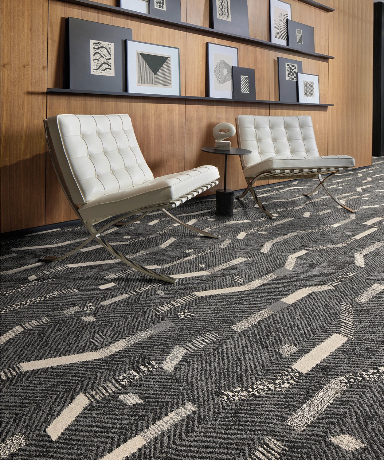 This workplace carpet tile collection is designed to shape spaces that resonate with occupants, generating an invisible flow of energy, feeling, and rhythm. By combining texture, pattern, and color, Resonant Spaces helps to spark creativity and deepen focus. The line includes three patterns: Beneath, Intangible, and Subtle Forces. It is available on ethos® tile, which is made with up to 79 percent recycled content and comes with a backing that can be fully recycled into itself.