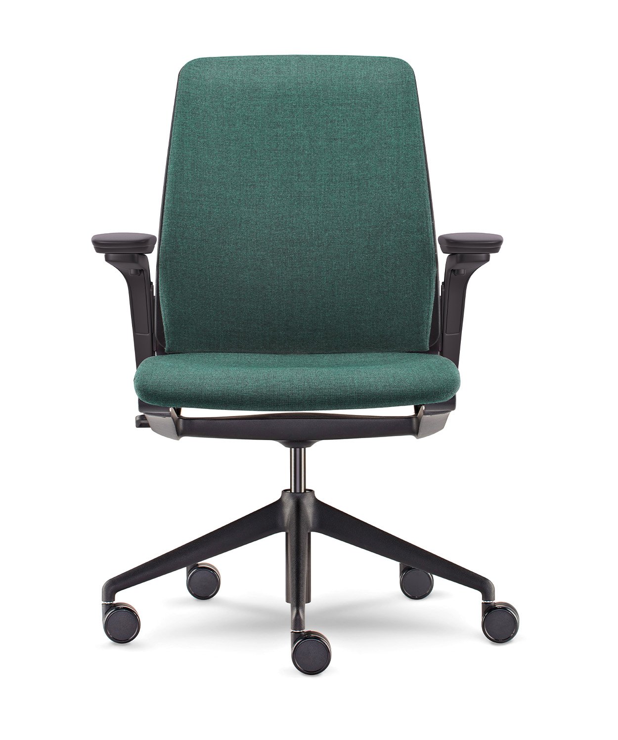 Unifi features a midcentury-inspired design with a soft, upholstered seat and industrial metal frame. The armless chair rolls smoothly on casters, making it adaptable to a variety of workplace needs. It is available in all of Keilhauer’s powder-coat finishes—including a newly launched palette—and can be upholstered in a range of textiles, faux leathers, and leathers.