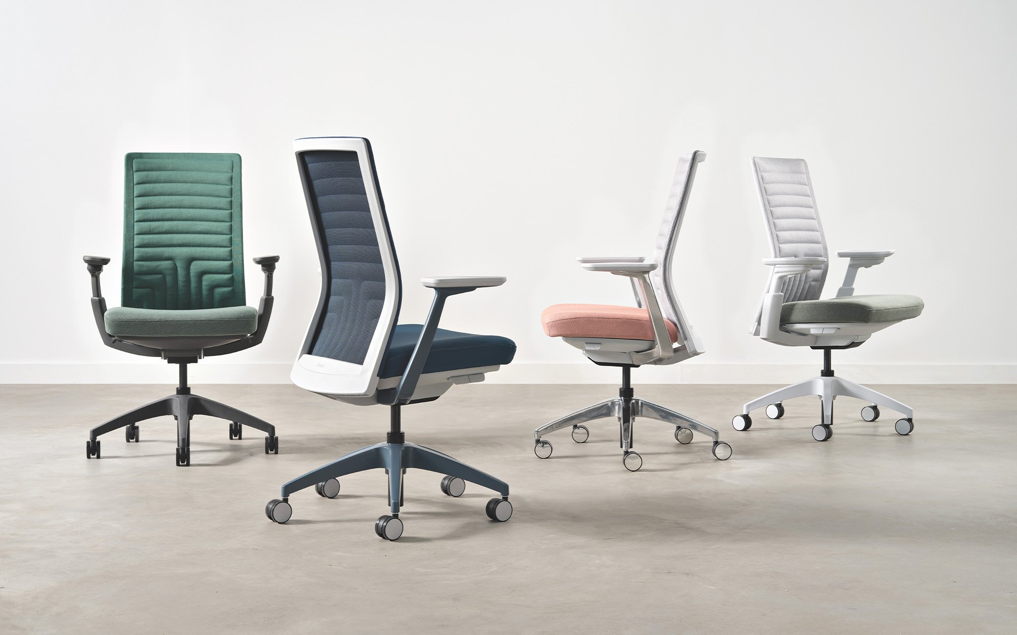 Updates for flexibility and sustainability expand upon Allsteel’s Evo Chair, known for its minimalistic T pattern, which highlights its lumbar support mechanism. A new backing, Evo Technical Knit, was created in partnership with Camira and is constructed from recycled materials and SEAQUAL® upcycled marine plastic through a zero-waste manufacturing process.