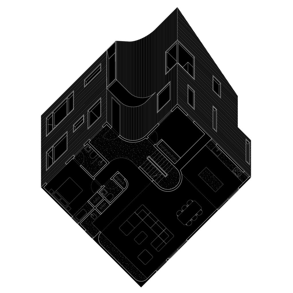 J. Jih (JJ): I’ve always had an interest in scenography, so I absolutely consider the choreography to be of importance when I’m designing at the residential scale. Particularly in this house, it’s tied to larger urban dilemmas of a densifying and expanding urban perimeter, which is a paradigmatic concern for a lot of periurban places right now. And so I find choreographing domestic life in a compact context to be quite interesting and at the heart of a lot of the house projects [I do].