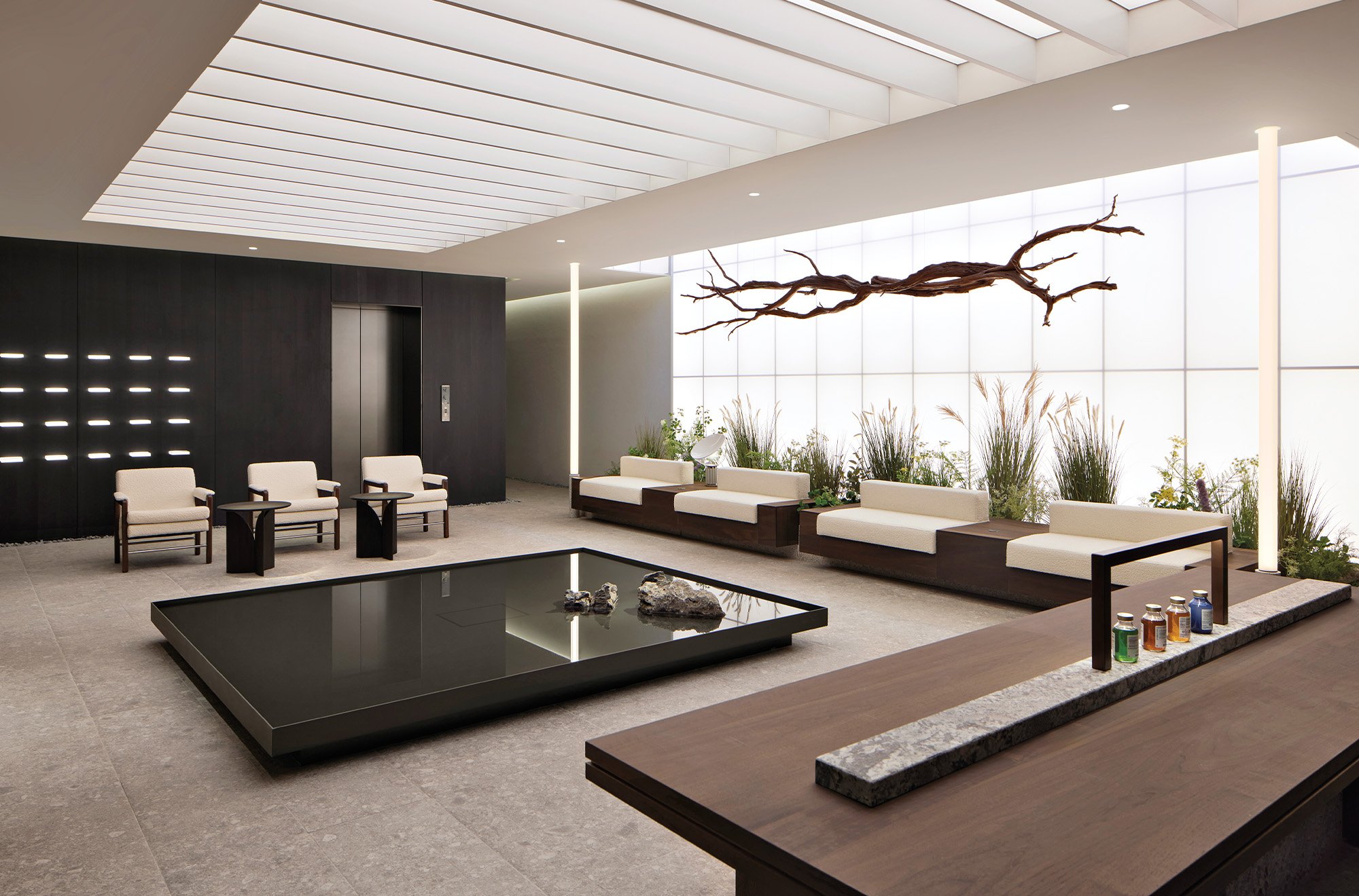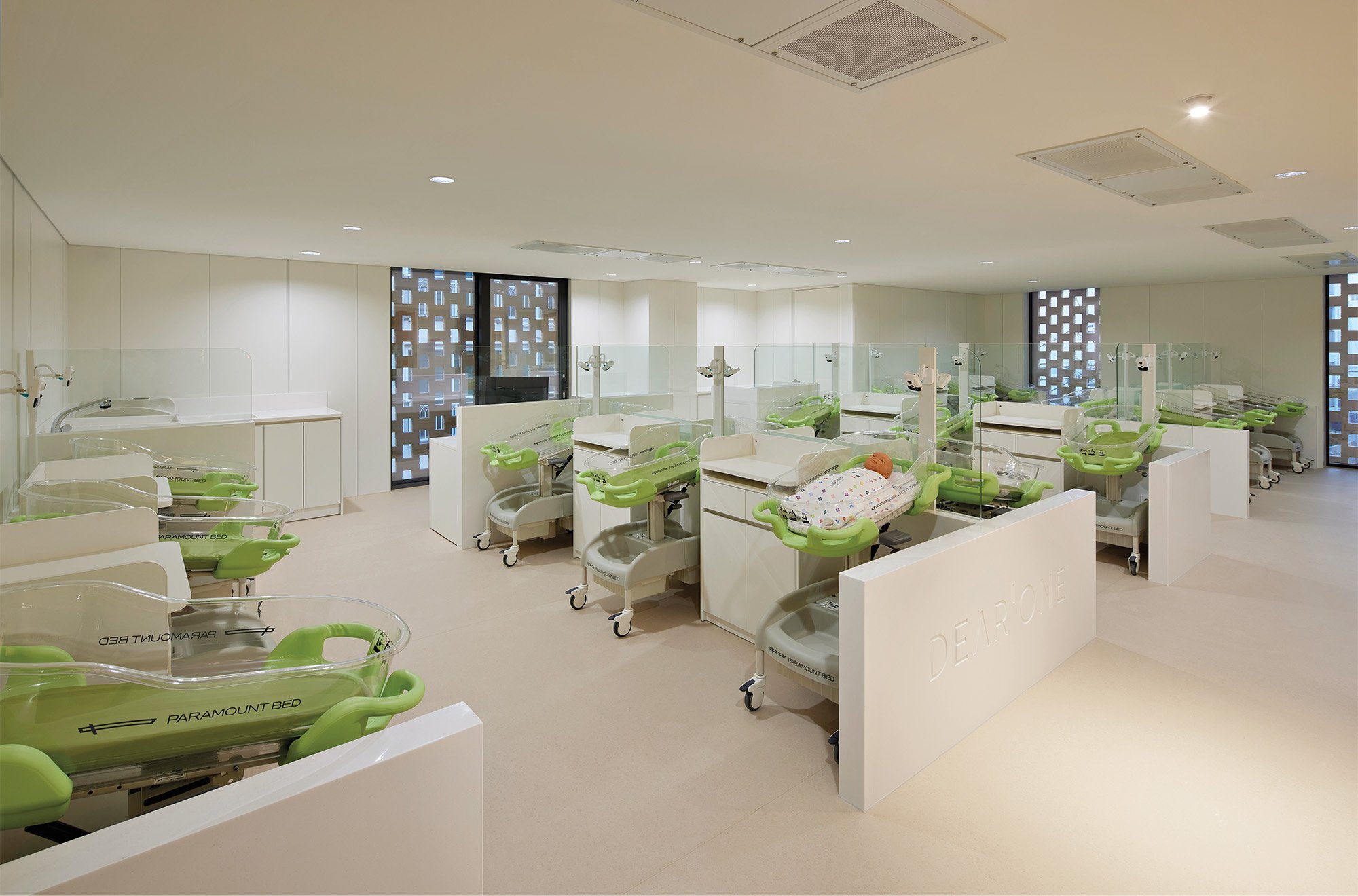 “These landscaped terraces naturally secure mutual privacy between the postpartum center and the residential apartments while creating an environment where both mothers and apartment residents can enjoy and relax in the presence of nature,” the studio’s chief architect says.