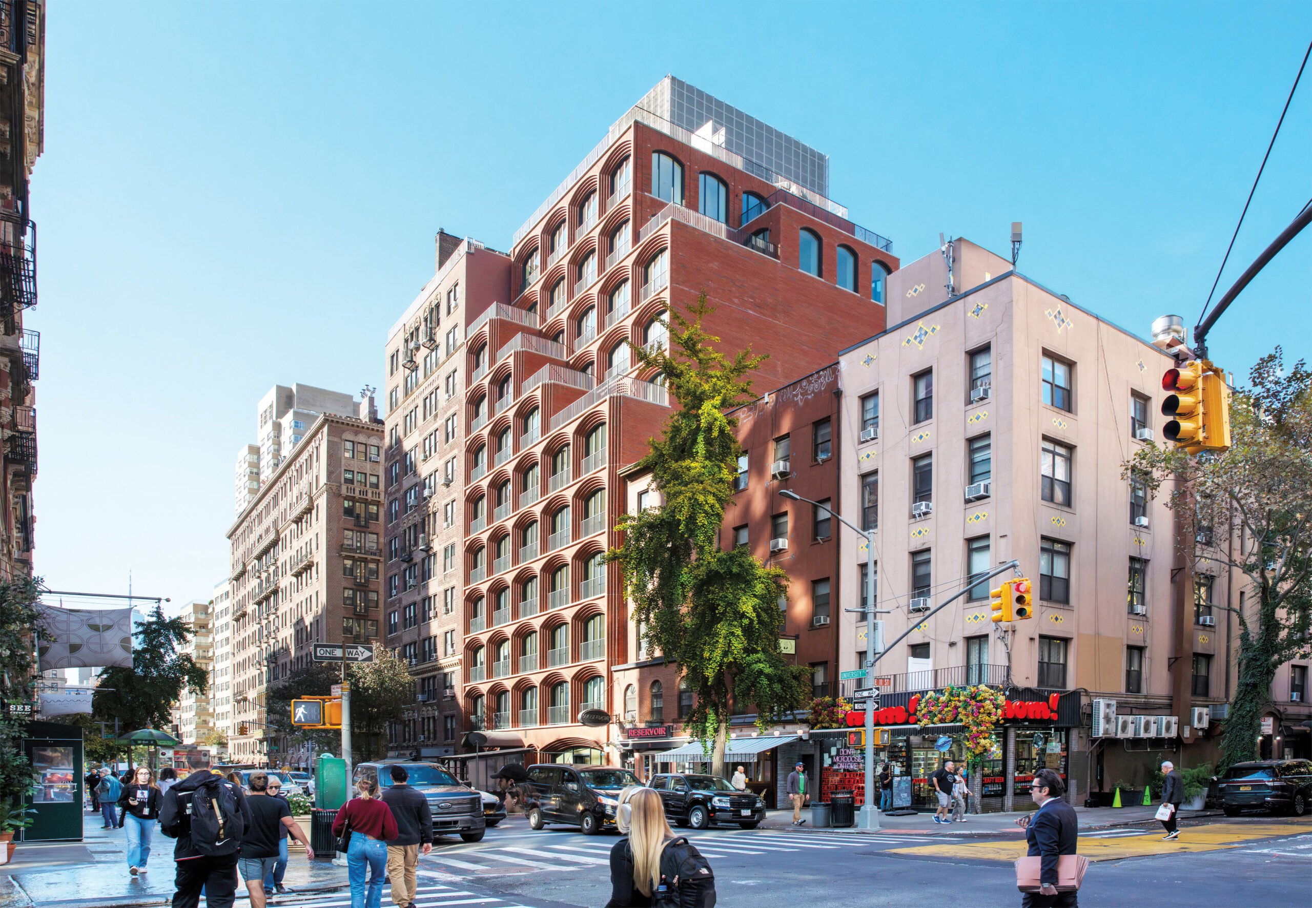 The arch is a central element of art history and architectural training, and Klemperer and KPF aimed to deploy its emotional and experiential qualities for this project. These qualities and, above all, the assembly system also meet higher energy efficiency on the masonry wall’s design by improving its thermal bridging. “With the arch, we could make this form that looked both heroic—because the arch dignifies the dimension—but also very welcoming, because an arch is a softer form,” adds Klemperer. The firm has made a name for itself building institutional complexes and flashy supertalls across the globe; in the last few years, it’s designed huge projects at Hudson Yards and One Vanderbilt. But at 64 University, with its finer-grain interfacing with craftspeople and laborers, pandemic-era construction constraints and overall delicacy of detail, Klemperer says, “this project was more of a jewel.”