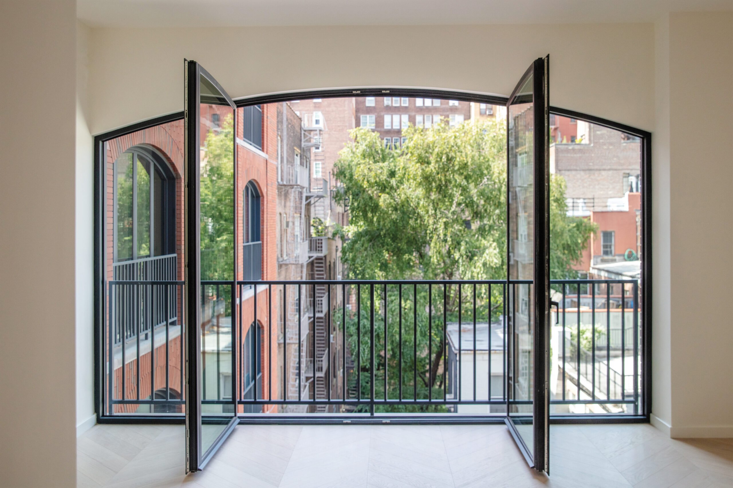 “The client said, ‘I want you to focus on a module, do it really well, do it a number of times, but design it once and perfect it,’” Klemperer remembers. After multiple iterations and working with builders and material suppliers, the design team landed on a pressed-in archway module with five layers that add depth between the exterior of the windows and the facade’s edge. Klemperer calls these arched bays “echeloned.” Beyond introducing a dynamic interplay of light and shadow as the sun hits different parts of the arches throughout the day, the deep arches give occupants a subtle sense of shelter and shade (depending on the time of day) from their wrought-iron Juliet balconies.