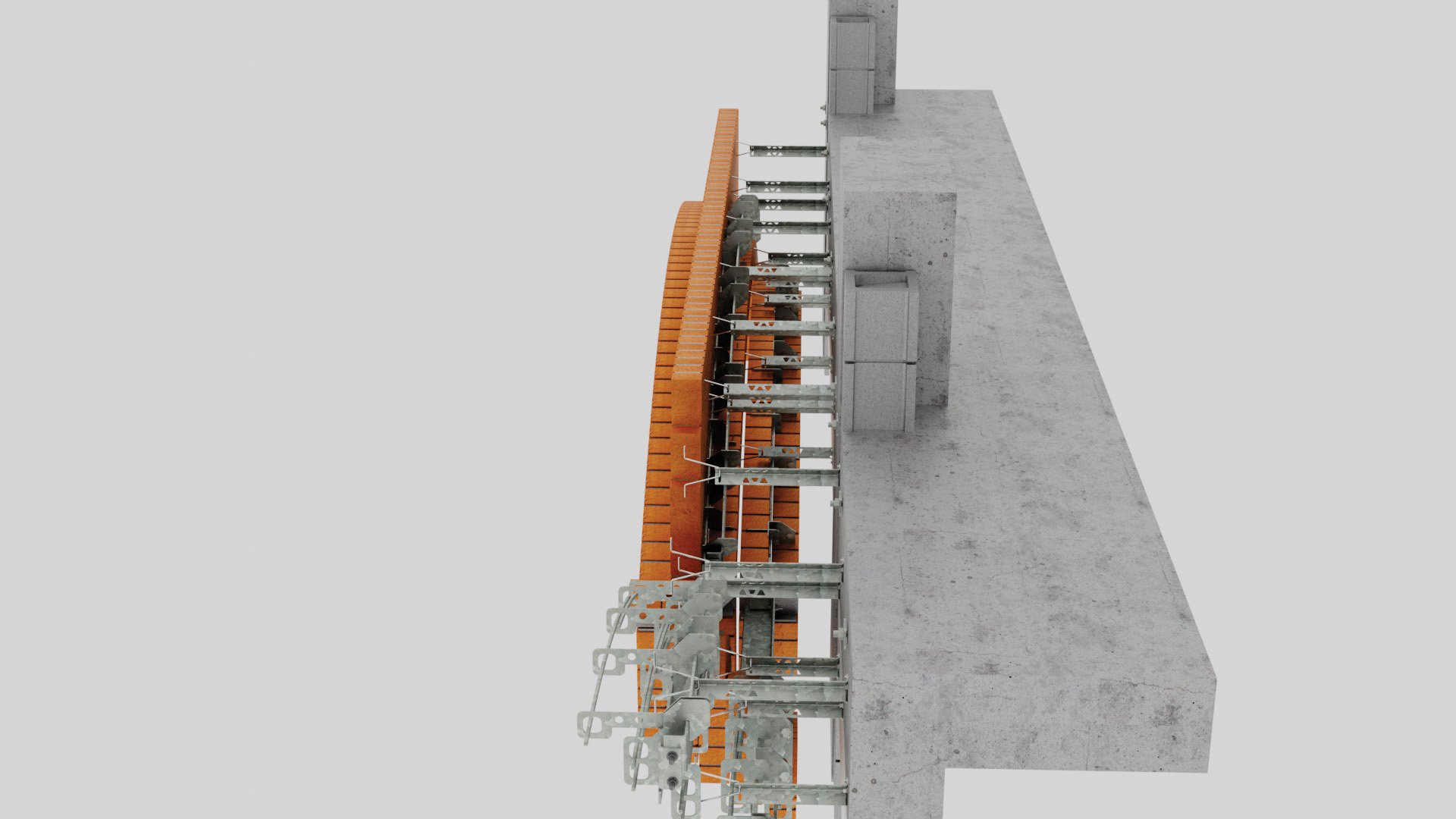 The brick facade is mounted to the building’s concrete structure by means of a steel bracket system that allows more airflow between the layers of the structure, increasing its thermal performance and allowing the use of smaller steel brackets—instead of conventional shelves—upon which the brickwork sits. Sourced from a Pennsylvania supplier and tested through more than 20 mock-ups, the bricks themselves exhibit some small variations due to slight differences in how the clay was baked in the kiln. They’re fastened to the arches via a metal rod: To constitute the signature arch, builders essentially slid the bricks along this track above each window bay, like beads along a curved abacus.
