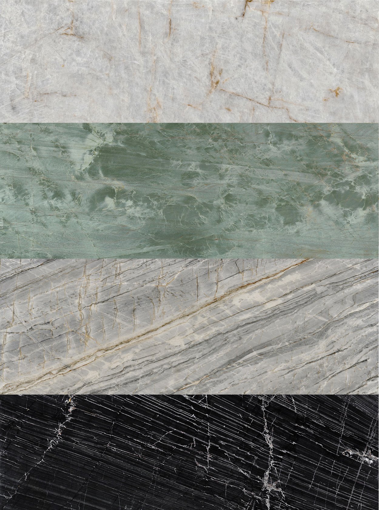 Six new quartzites join the Sensa by Cosentino collection with richly veined patterns that imbue personality through colorways ranging from earthy greens to dramatic blacks. Protected with antiscratch and signature Senguard NK antistain treatments, Sensa products are backed with a 15-year warranty as well.