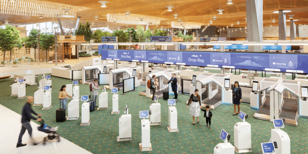 Portland International Airport’s newly redesigned terminal brings nature inside using timber, trees, and natural light to create a stress-free journey for travelers.