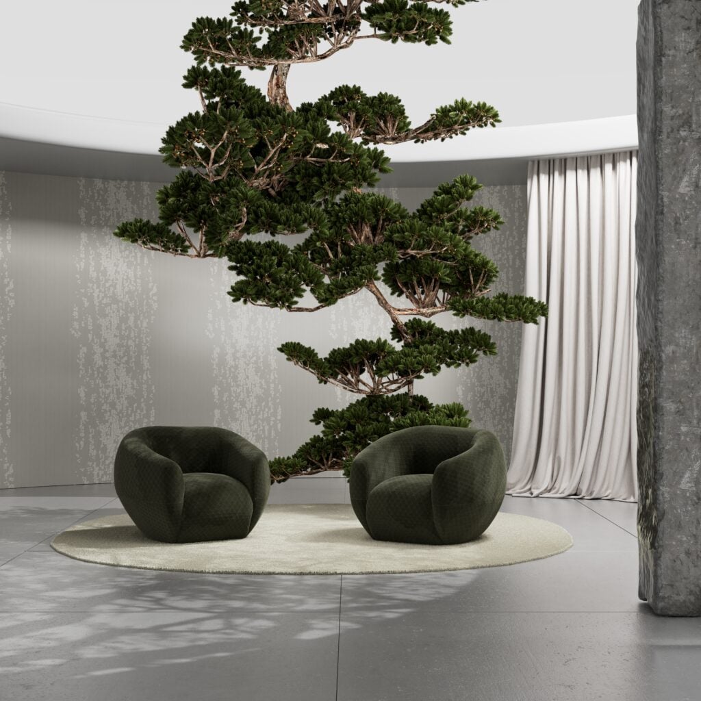 ML: Renaturation is a big political discussion. We know it is, especially from the European Union. There’s a new law where 15% of agricultural or industrial landscapes need to be given back to nature. It’s similar to what we do with the built environment. We want to give it back to nature or to natural essences like fractals. In recent years, for this collection, we worked with software that we created together with Richard’s team to generate and grow these fractal patterns. With this software, we are able to control the parameters necessary from a scientific perspective to get the result of stress-reductive patterns.
