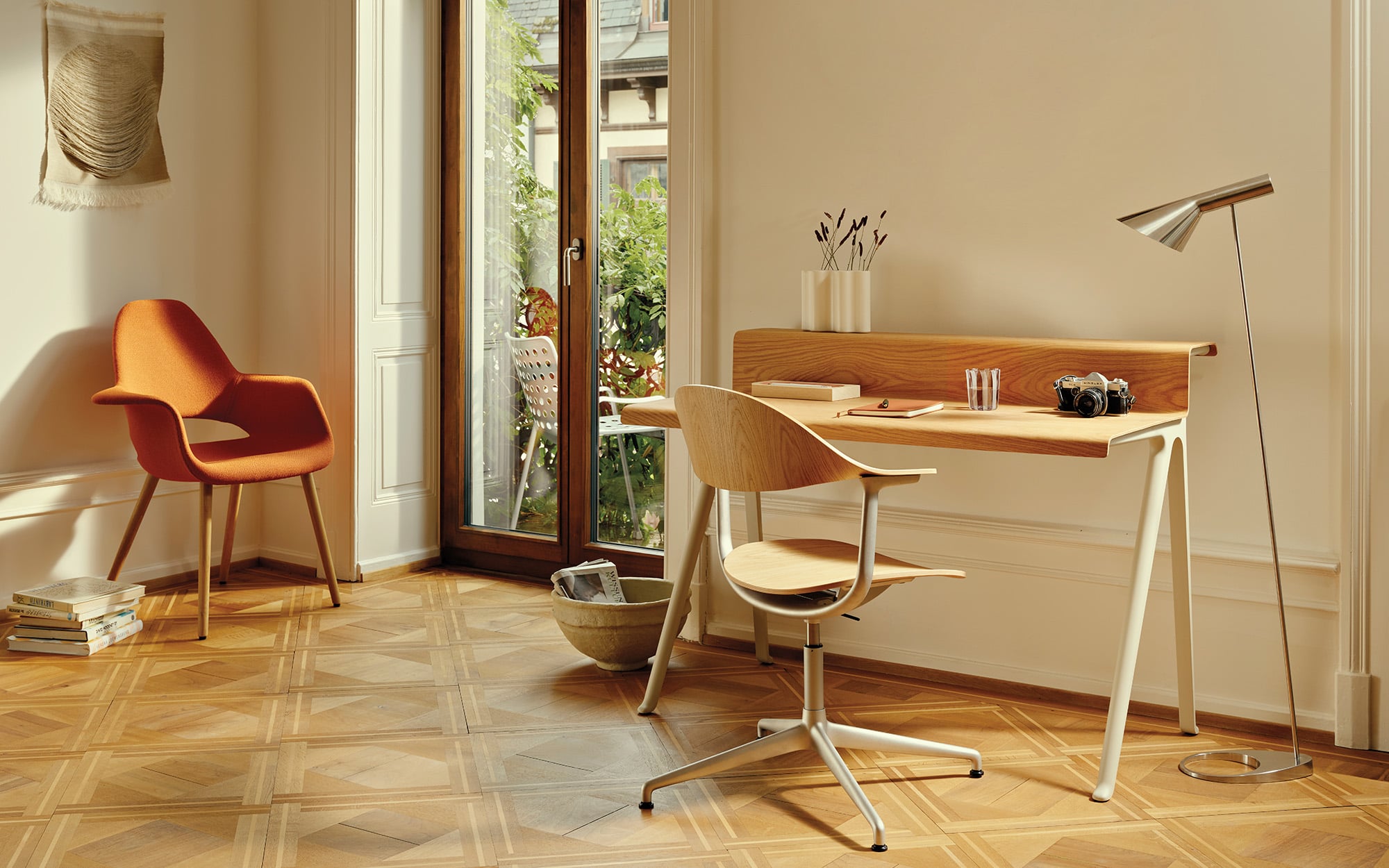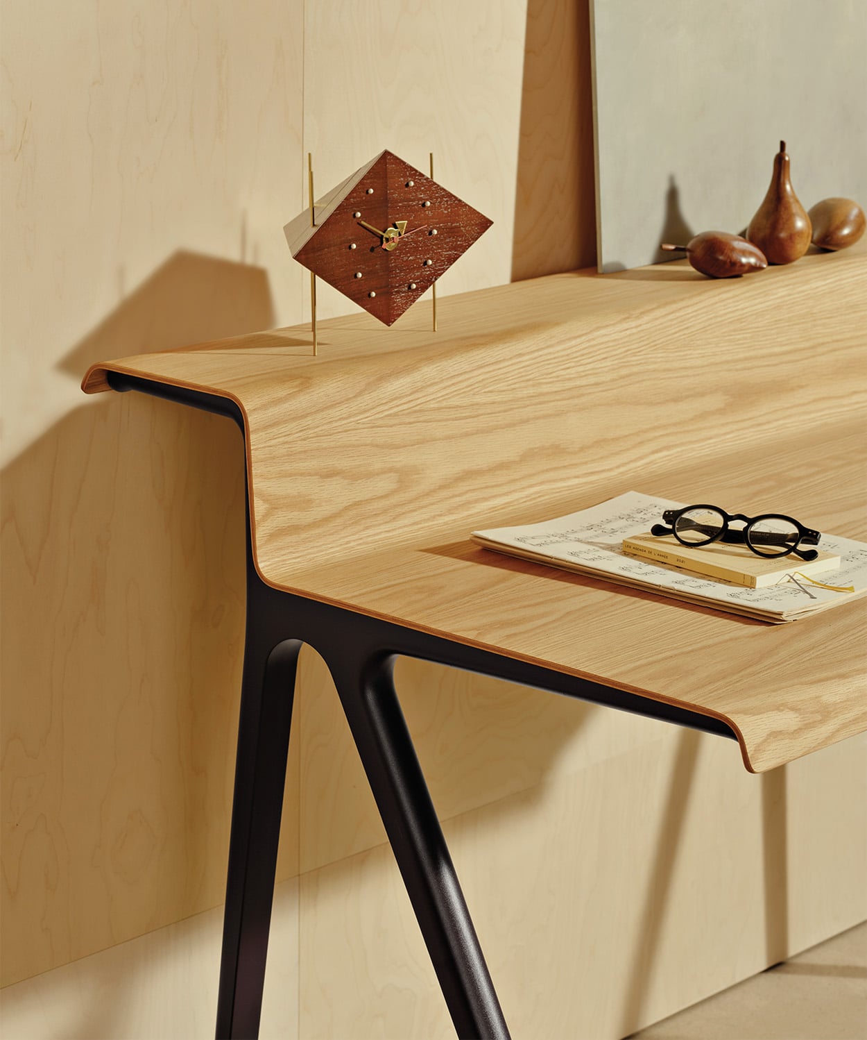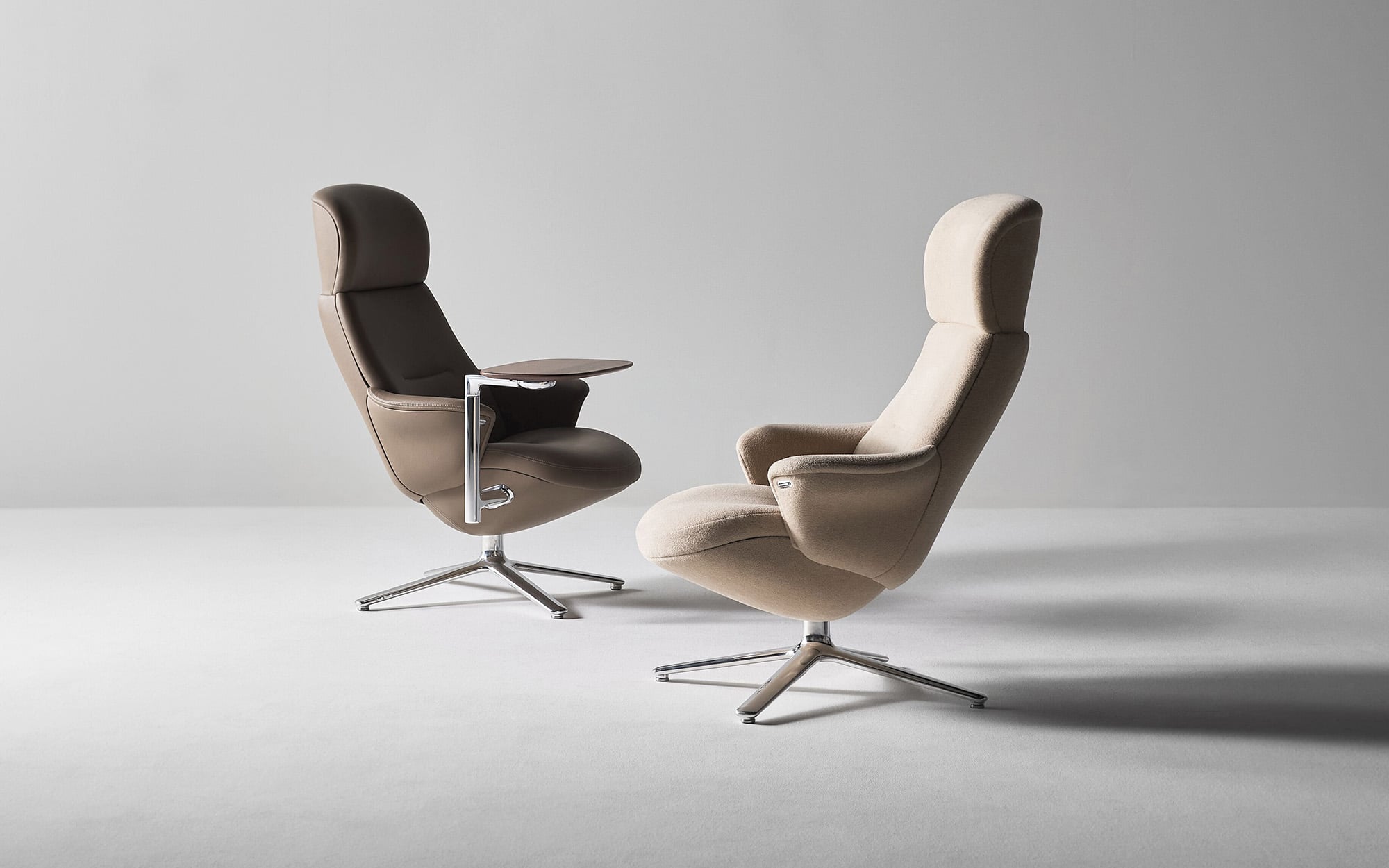 Designed by renowned industrial designer Niels Diffrient, Humanscale’s first lounge chair aims to balance work and leisure. It features a custom-engineered recline mechanism and a refined silhouette, with independently adjustable back and headrest for a personalized experience. Integrated details include USB charging, discreet adjustment buttons, and an optional swivel table.