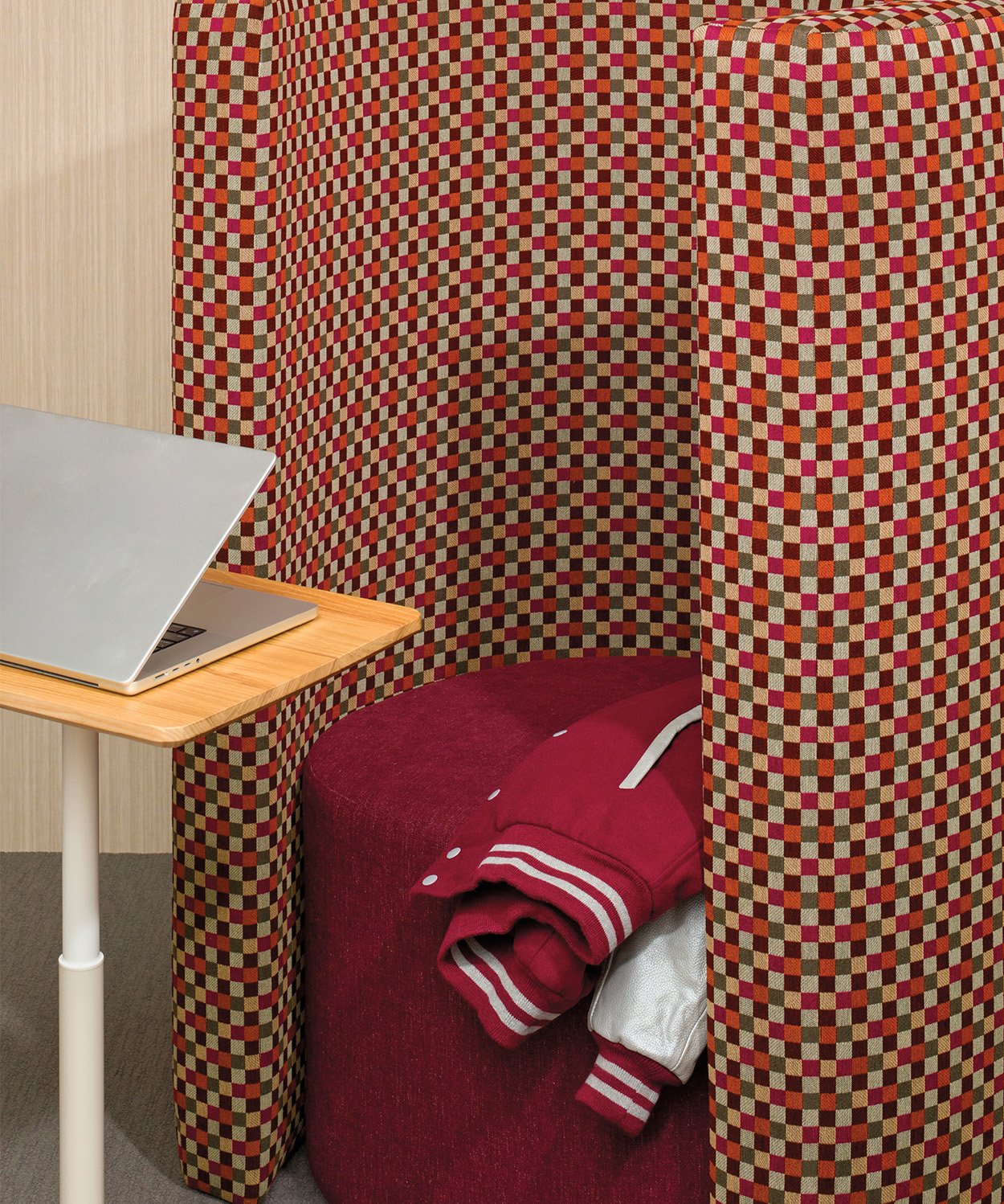 Wolf-Gordon’s Color Craft (pictured) and Criss Cross by Dorothy Cosonas celebrate creativity with patterns inspired by color theory, art materials, and playful experimentation. Printed on durable woven upholstery, the designs blend precise line work with movement and structure—bringing warmth, sophistication, and a fresh yet nostalgic feel to learning spaces and beyond.