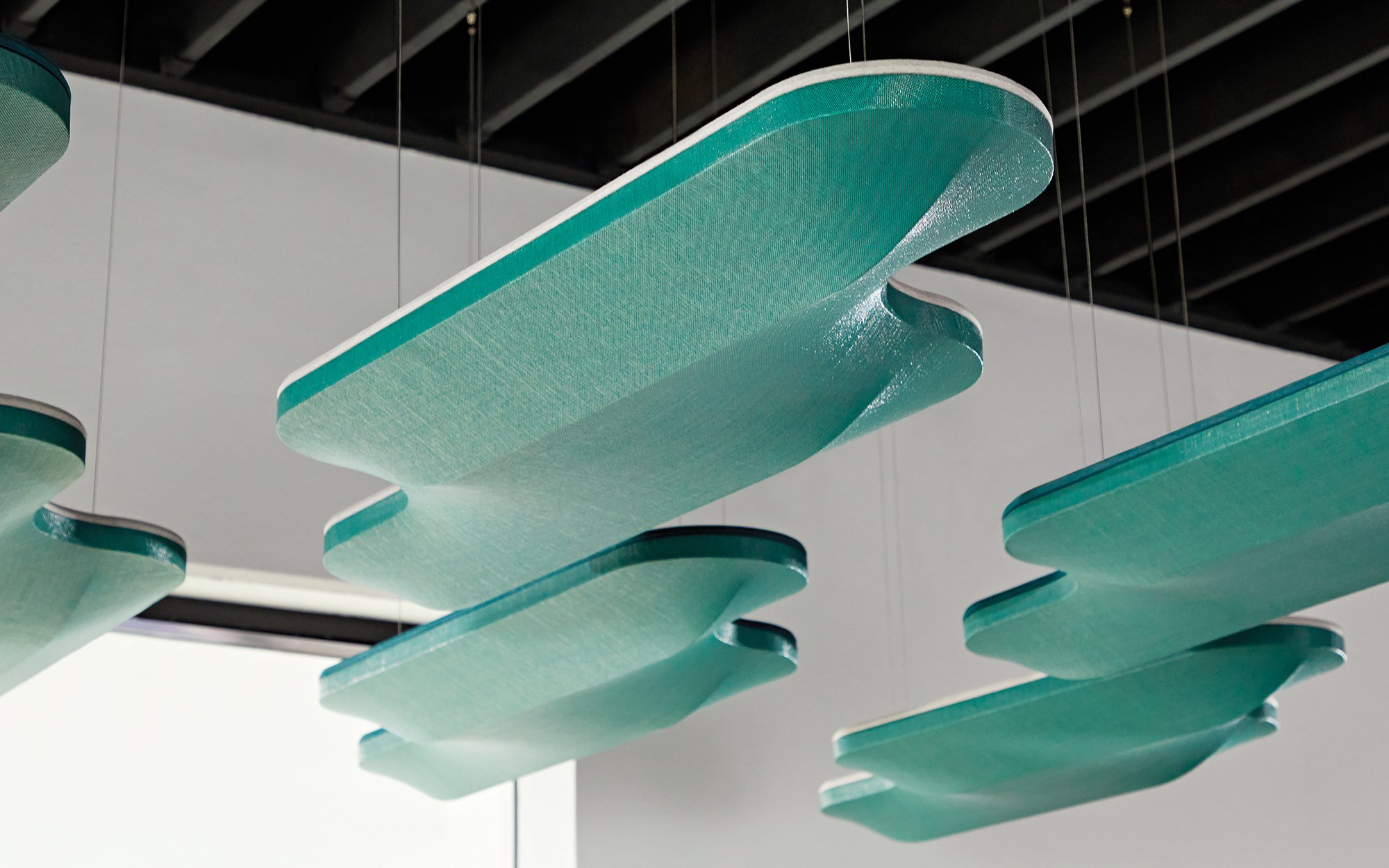 Nest Baffle is a series of hanging acoustic panels made from 100 percent biodegradable and compostable wool felt. The contoured panels come in half-round, quarter-round, and linear formats, allowing for multiple configurations. Available in 95 colors, the collection offers an NRC of 0.70 and meets the criteria for the Living Building Challenge and California Prop 65 compliance.