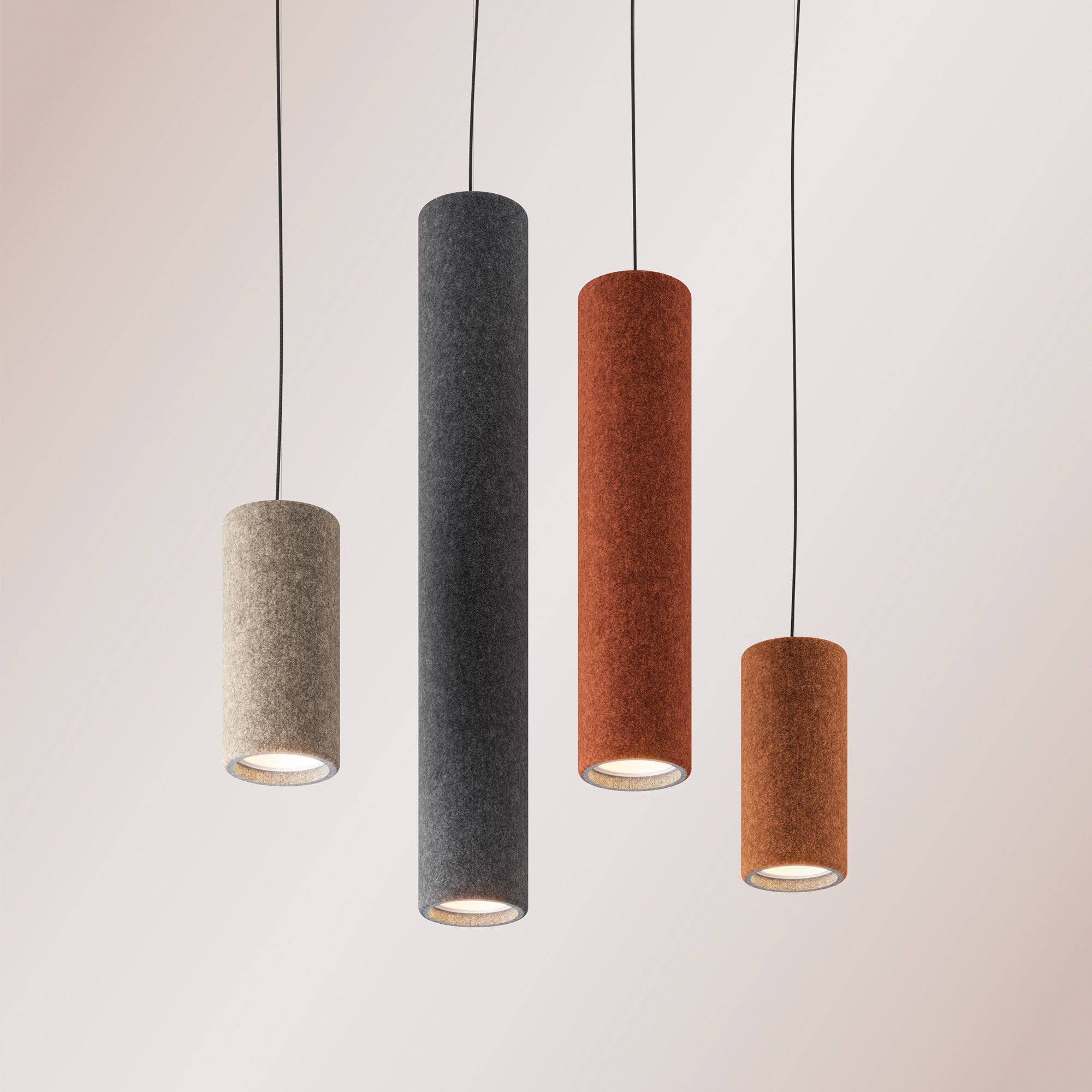 A modular collection of linear, cylindrical light fixtures with acoustic properties, Stalik is designed to be clustered or dispersed throughout open workspaces. Featuring an inner recycled PET structure and sustainably sourced New Zealand wool exterior, Stalik is available in three heights and 77 color options. An unlit baffle version is also available for applications in which sound absorption and spatial division are top priorities.