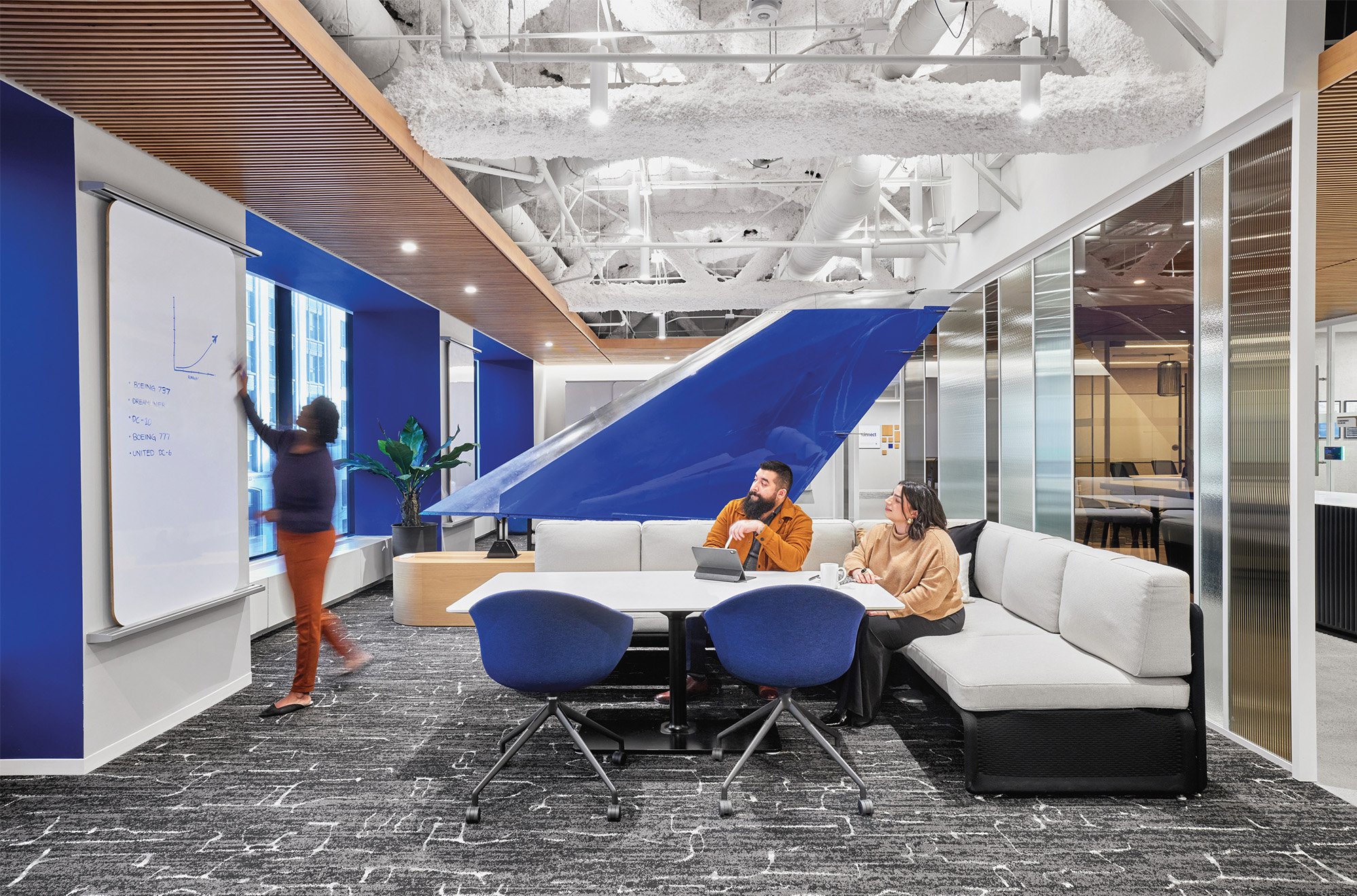 As the first airline committed to achieving net-zero greenhouse gas emissions by 2050 without carbon offsets, United Airlines needed the renovation of its Chicago headquarters to embody its values. Housing more than 3,000 employees across 650,000 square feet and 13 floors of the Willis Tower, the office was refreshed by IA Interior Architects with a new lease on circular economy.