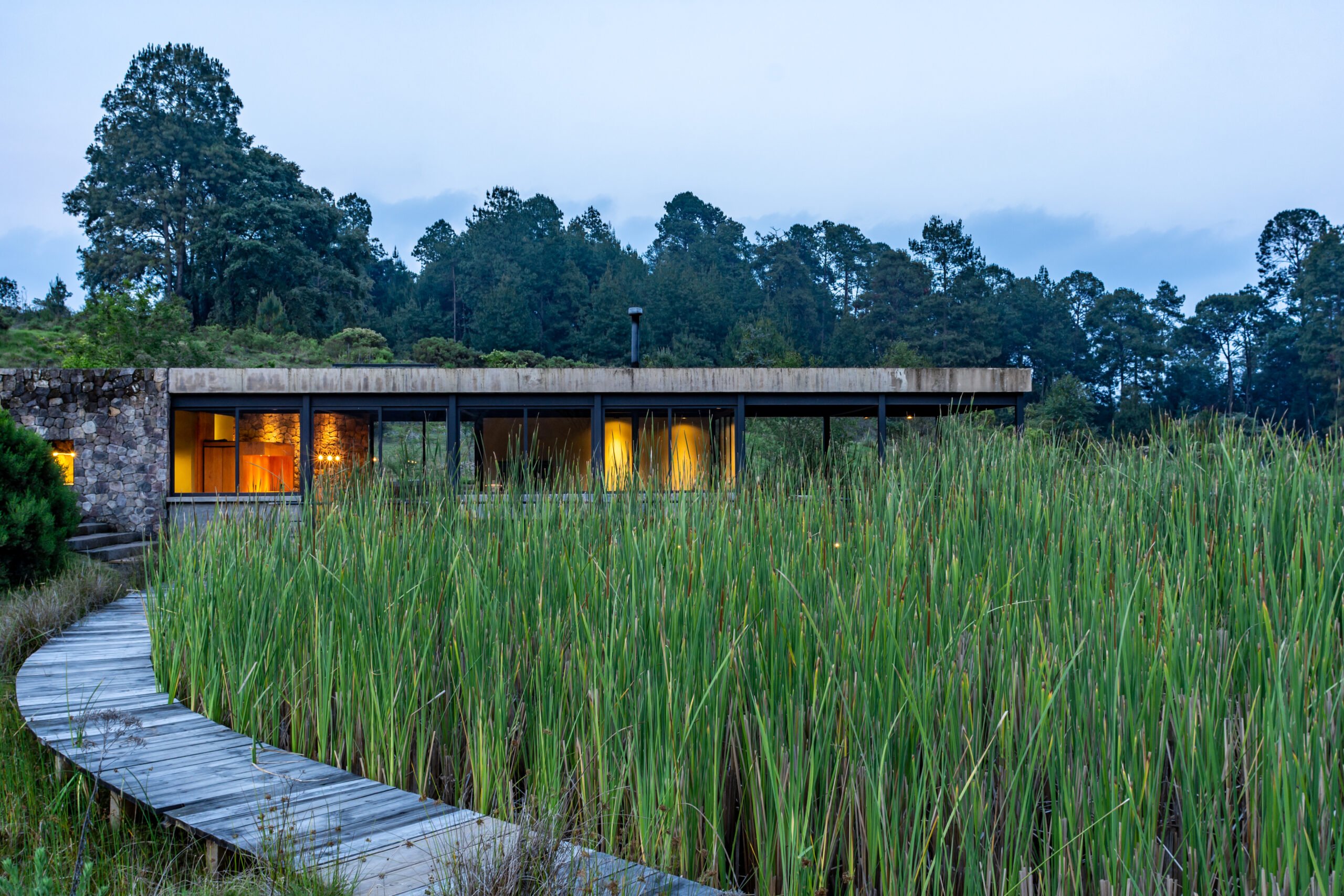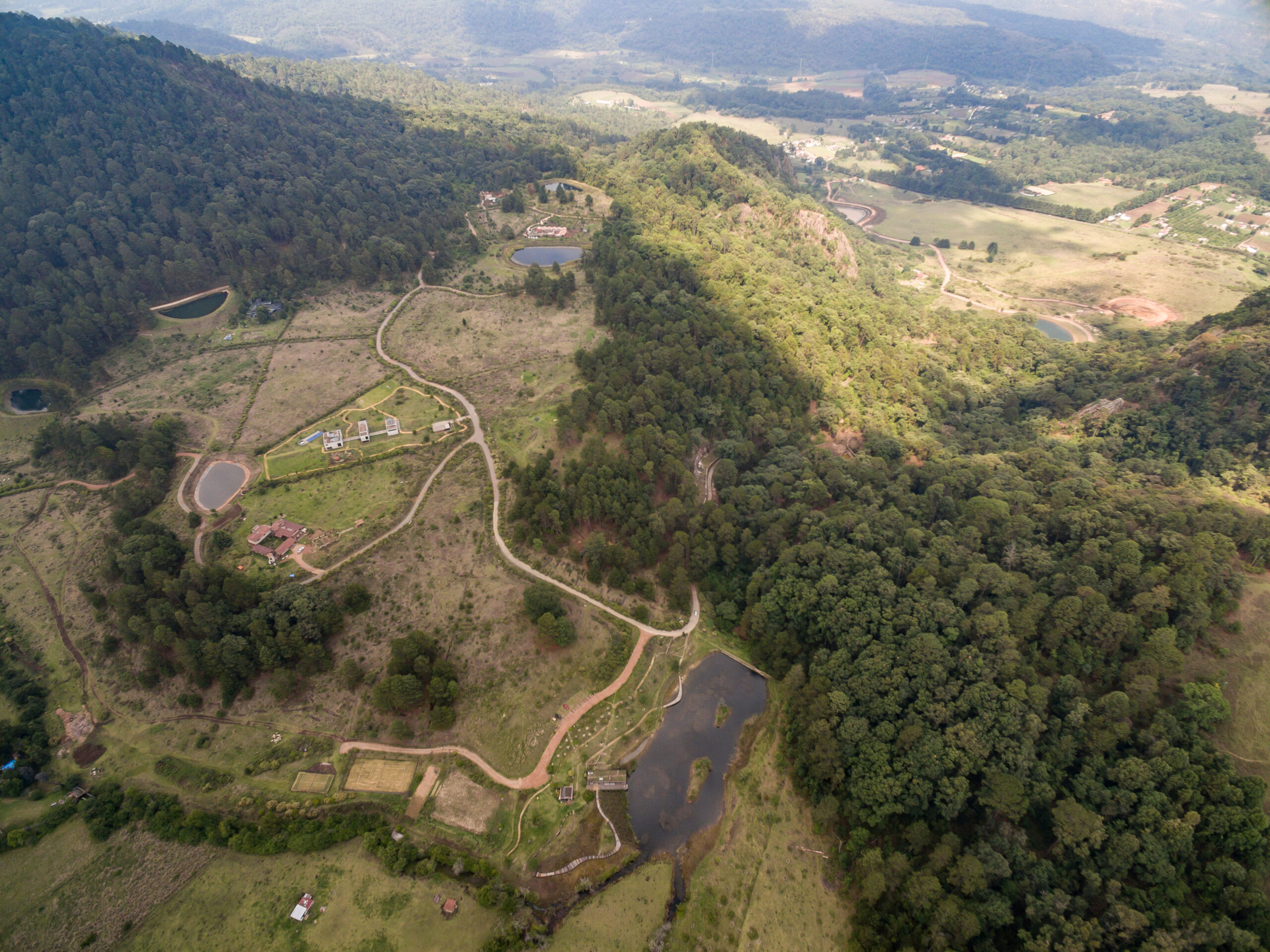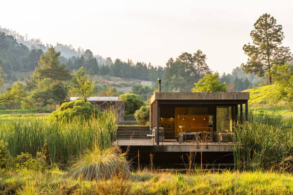 Located in Valle de Bravo (State of Mexico), just a few hours from the nation’s capital, the Reserva Peñitas is a cooperative community founded 15 years ago with the mission of restoring and developing 200 hectares of land, adapting to a geography where water resources had been drained and its areas were overexploited. Now, this community of 80 families more closely resembles an unexplored, pristine, yet diverse landscape. It includes dense pine and oak forests, wetlands interspersed with lagoons and rivers, as well as meadows with flowers, fruit trees, and orchards. Currently, the Reserve combines conservation with low-density residential planning, with each ranch occupying two hectares, and homes using a maximum of six hectares of the land. Some houses have been designed by renowned studios such as Rozana Montiel, Fernanda Canales, Gabriela Carrillo, and Javier Sánchez, but all of them are sheltered behind living fences and resemble experimental pavilions more than conventional country houses. The architecture not only lacks a central role but is also subordinated to the landscape and the environment.