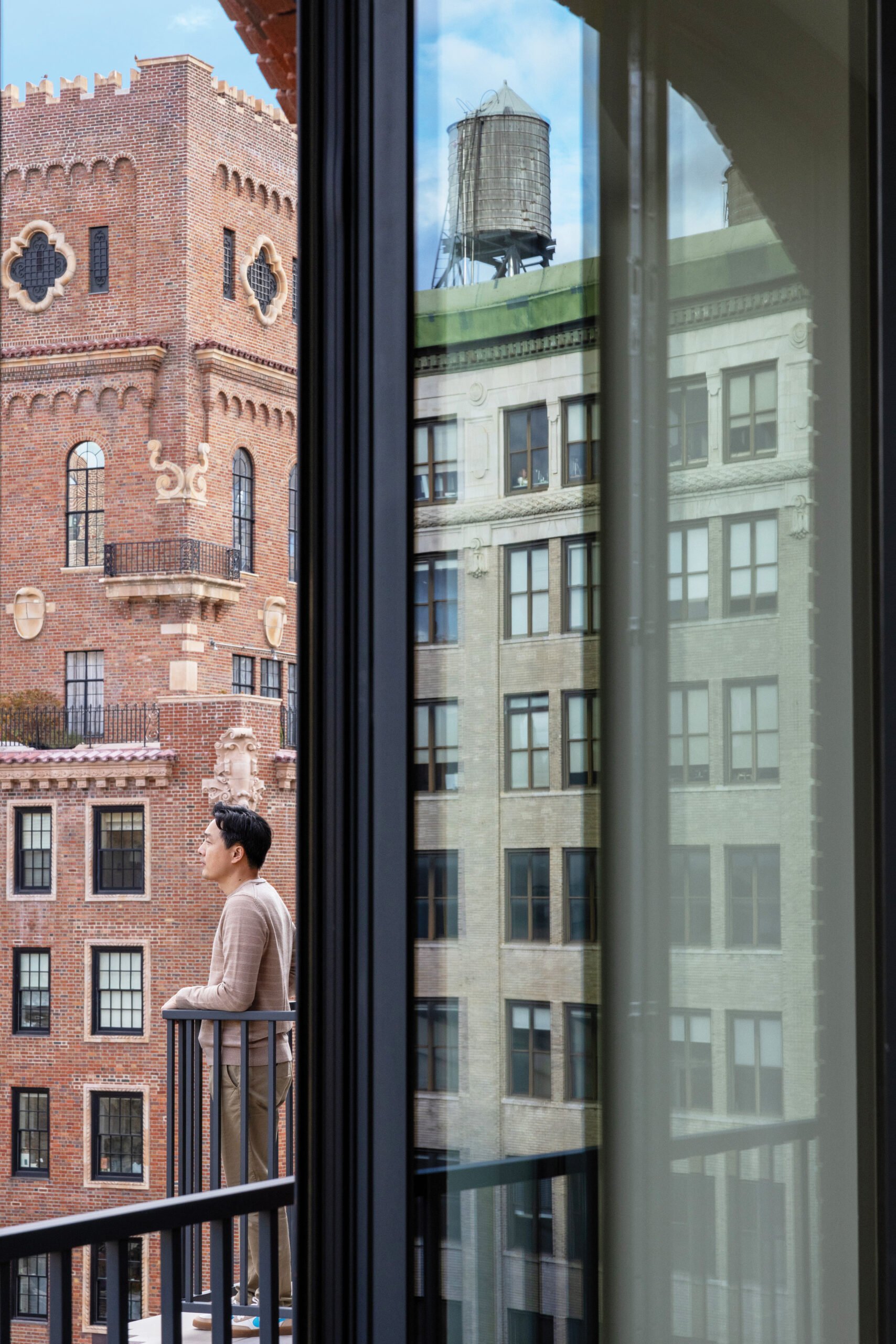 Another amenity, the shared roof, is oriented toward the rear, from which a sea of windows of surrounding buildings unfurls. It’s a common sight from many New York vantage points, but is especially dramatic in this notably dense and historic patch of Lower Manhattan. “It feels like you’re part of the family,” Klemperer says of the visual effect, adding that the “little bits of nothing” glimpsed in the panorama add up to a certain “picture of New York.”