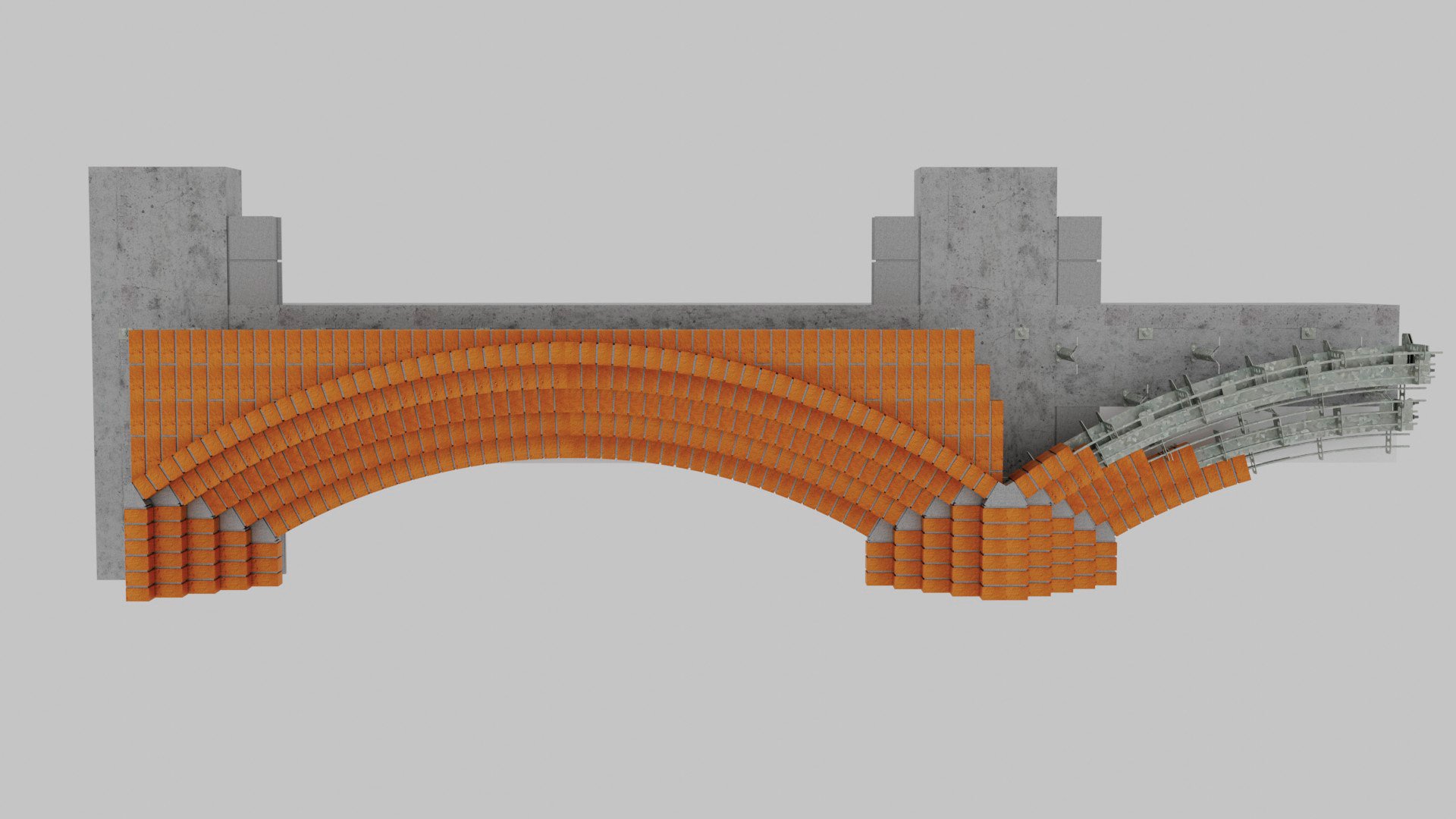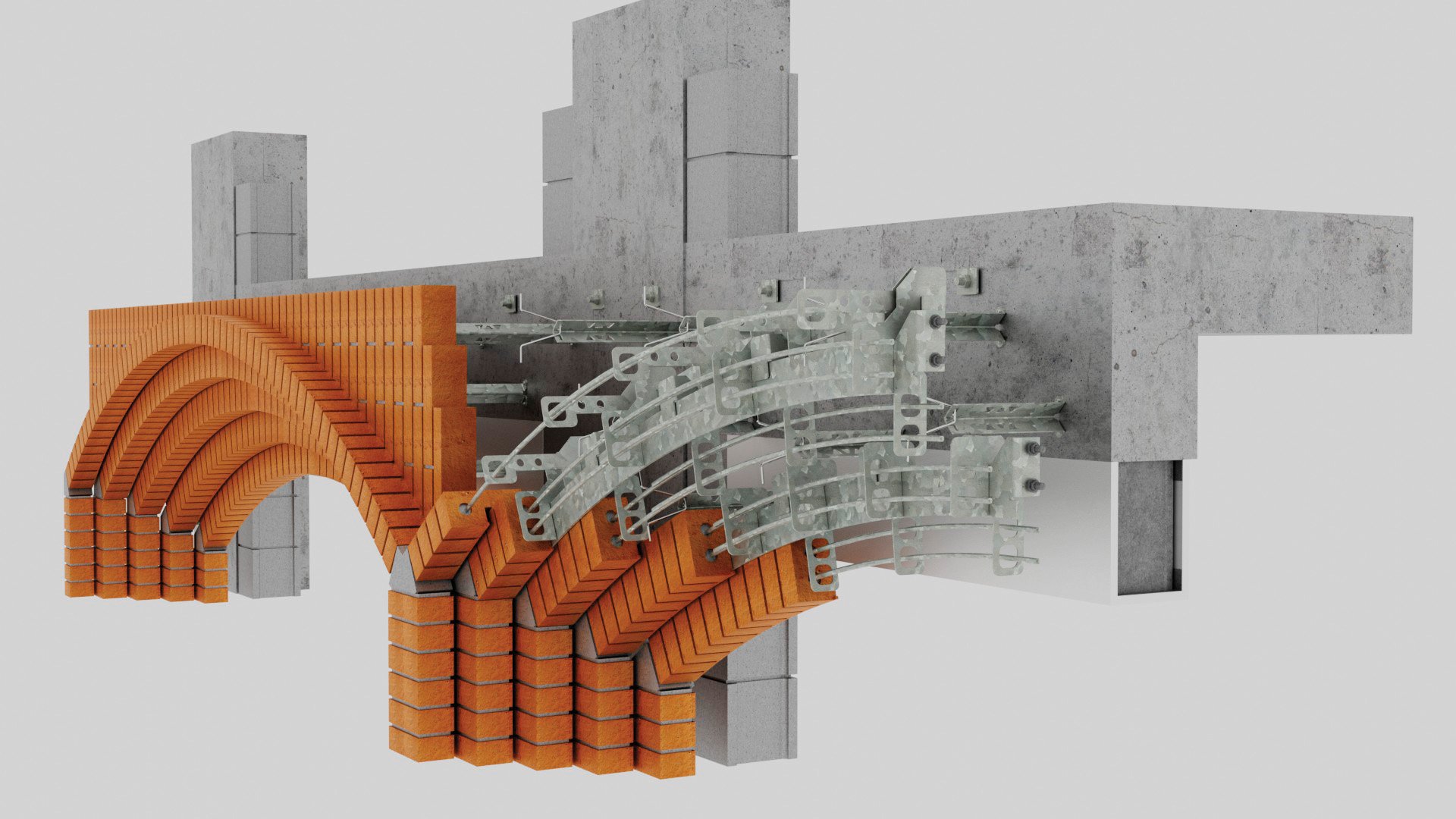 The brick facade is mounted to the building’s concrete structure by means of a steel bracket system that allows more airflow between the layers of the structure, increasing its thermal performance and allowing the use of smaller steel brackets—instead of conventional shelves—upon which the brickwork sits. Sourced from a Pennsylvania supplier and tested through more than 20 mock-ups, the bricks themselves exhibit some small variations due to slight differences in how the clay was baked in the kiln. They’re fastened to the arches via a metal rod: To constitute the signature arch, builders essentially slid the bricks along this track above each window bay, like beads along a curved abacus.